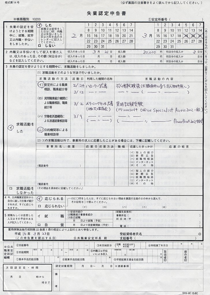 午後から職安へ。いよいよ最後の認定日です。失業認定申告書に、きのさんからの収入を記載したので、その分目減りするのかなーとか思ったりしてたけど、そんなことはなくてほっとしました。