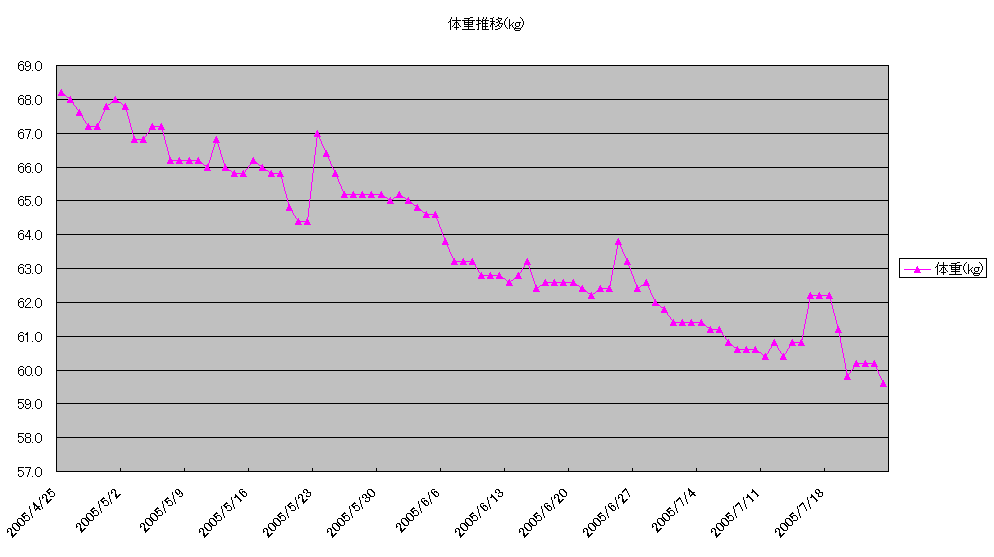 今月の目標59.9kg (7/24迄) 地道にがんばろう。