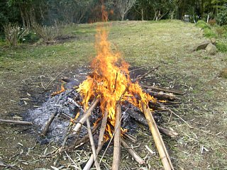 上の畑の奥の枯れた竹木を伐採してちまちま焚火をいたしました。まとめて焚きすぎると大火になりすぎて近寄れなくなっちゃうので、適宜竹木を追加。