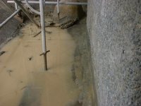 本来水中ポンプのトコまでスムーズに水が流れるはずなのに、砂が溜まって堰き止められ、ご覧の様な状況になっていたのでした。あう〜。