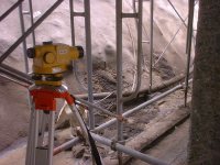 レベルをぐるり回して柱脚にビシビシ墨を打っていきます。この後は順調に済みました。
