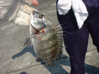 チヌだ! 型は大きくないけど、いいなあ〜。 そうなんです。忘れてたけど本日の目標はこいつを釣ることだった。これを見て、またいそいそとウキ釣りの仕掛けにかえたりして。(^_^;)