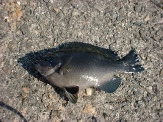 オセンさん (スズメダイ) だ。速攻リリース。せごしならまあ食えるけど、煮付けにするとマズイらしい。磯野さんが言ってた。