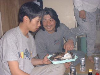 今回はこれで終わらないのです。ハゲを釣ったんだから鍋をせにゃならんでしょうってことで、翌日はみんなであつまって宴会!