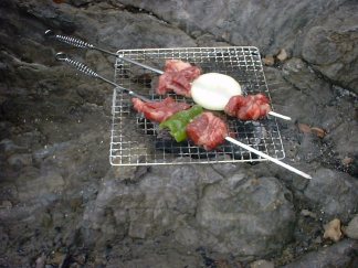 疑問を抱きながら釣り糸を垂らしていると、F産業のけんちゃんがバーベキューを一串持ってきてくれた。