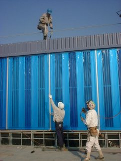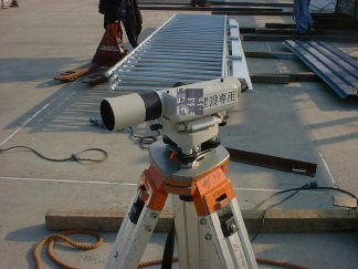 屋根の上に上がったK村がスケールを下ろし、ぼくはレベルを覗いて上下を言って、またK村が上でポイントを取る。風がない日はスケールをぶら下げるだけで出来るけど、風があると揺れるのでアウト。でもたいがい屋上にいる心優しい誰かがスケールの端っこを持っててくれるので大丈夫。