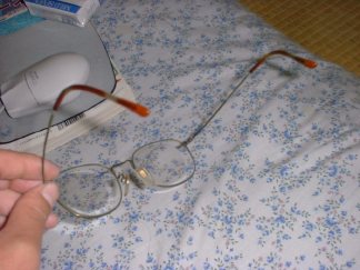 ある日やいさんがどこぞへ飲みに出かけたとき、風呂からあがって一人でパソコンをつついていたら、どうも文字かよく見えない。