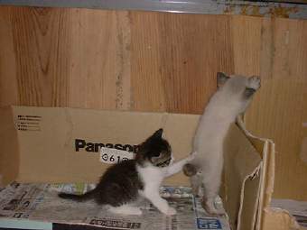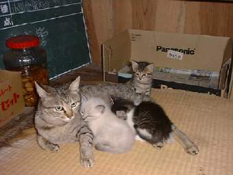 実家の納屋でねこが子供を産んで住み着いている。 写真の親ねこは母親で、父親の白いねこはどこにいったかわからない らしい。 人見知りをしないヤツらで、将来ちゃんと巣立てるのか気になったりも するが、まあ田舎にいる分には食うには困らないだろうし大丈夫か。 近所にねこ好きのおじさんもいるし。 (BACK)