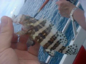 しばらく船頭はぼくらの様子を見ていたが、ゴソゴソとなにやら仕掛けをもって、船首に腰を下ろした。ん?エビ型のルアーって、イカ釣りか?