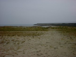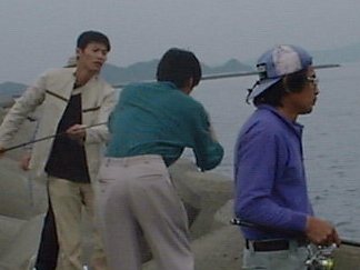 そのあとK村と、T工務店のMさんが応援 ( ひやかし?(^_^;) ) に駆けつけてくれた。 左からK村、T工務店のMさん、そしてNさん。ん?K村、なんか釣れてるのか? 昼過ぎてからは、さっぱり釣れなくなってしまった。そして2時半くらいに納竿。 帰りに振り返ってみる。写真ではわかりにくいかもしれないけど、右前に続いているのはテトラポットで、これをちまちま渡っていったのです。角を曲がって少し行き、さらにもう一つ角を曲がったところが今回の釣り場です。結構ひいひい言わせてもらいました。