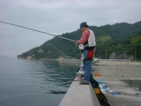 途中H氏達と合流し、西へと向かって小さな港までやって来た。そこで釣り開始。