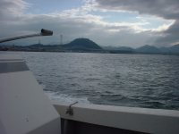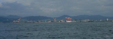 宇品の港を出発し、三菱重工の工場を横目に見ながら、船は宮島方面へと向かう。