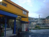 釣具屋「シーラカンス」に着くまでは雨が降っていたので、安いカッパを買った。が、店をでたら晴れてきた。ちっ。