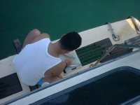柱島の手前の端島という島のちょい沖に錨を下ろして、とりあえずスタート。何人かは磯に向かって泳いでいった。