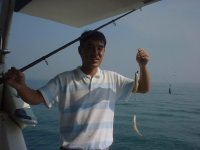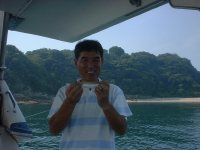「釣れた〜。やす、写真撮ってくれ。」