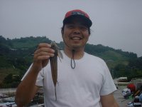 上げきるまで分かんなかったけど、いるじゃんか。こりゃハゼか。あ〜、微妙なサイズだなあ。GETかリリースか。・・・・・・リリース。(後で後悔する。(笑))