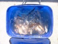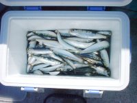 おびただしい数のマイワシが入って来て、ホント久しぶりに「バンバン釣れる」っていう感覚を味わえました。しびれた。初め、水汲みバケツにとりあえず入れてたんだけど、それじゃおっつかなくなったので今日は使ってないバッカン(撒き餌のバケツ)に水を張って、それにどんどん鰯を入れていったのでした。
