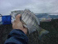 まったく信じられない。一体これまでのおれって何だったんだろう?って感じです。一匹釣っただけでも、もう帰ってもいいぐらいの満足度だったけど、それがもう一匹くるとは。最初のヤツよりは小さいけど、それでも「チヌ」が釣れたというのが嬉しいっす。