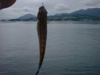 ここはちょっとした湾になっていて、今日はアジとサヨリがかなりの数入ってきてたみたいだけど、ぼくらはそれ用の仕掛けはやんなかったので、「見るだけ」に終わりました。アジは浅めにウキを固定して狙ったら2匹ほど掛かったんだけど、2匹とも取り込む前にバラシちゃいました。残念。ま、今日はそれもご愛敬ですわ。(普段にはない余裕)