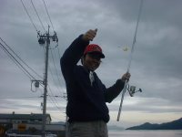 でも、H氏の竿には何故かサヨリ用の仕掛けがついておりました。それならOKですぜ、まだ湧いてるよ。でも、海面まで距離があったので、ちとつらそうではありました、H氏。