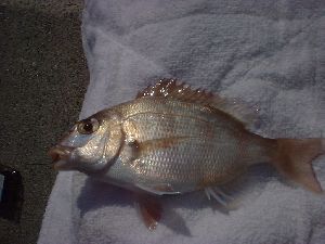 鯛! 超ちっちゃいけどね、いるんだなあ。しばしの葛藤の後、持って帰ることに決定。このクサレ外道!(←おれね。)