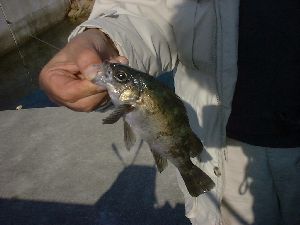 鯛はこれきりだったけど、ほどなくきのさんの竿にメバルがヒットした。そしてぽつぽつ釣れだす。