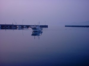 車を役場裏の駐車場に停めて少ししてK原さん登場。今日は親父さんも御一緒です。H田さんもベンツでやって来て、(なぜベンツ) 10分前には予定の5人が揃い、港で「大福丸」が来るのをしばし待つ。