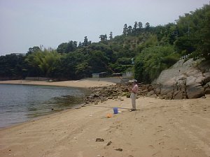 「生イキくん」(つけえさ)も寂しくなってきたので、一旦釣りえさ屋に戻って今度は青イソメをゲットして投げ釣りに転向。久しぶりに、昔来てキスがよく釣れた浜にやってきた。