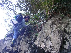慎重に岩場をクリアして、山道をえっちらおっちら登る。途中、小休止を挟みつつ、ひいひい言いながらやっとこさ登りきる。