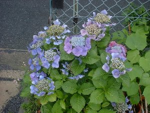 いつから咲いていたんだろう、このあじさい。よく見るやつとは違う種類だけど、駐車場の出口に在りながら、なんとなくいい感じに座っています。鉢植えだから近所の人が持ってきたのか。ここを通るときは、ちょっと癒され気分になります。