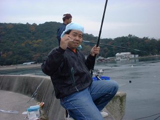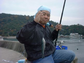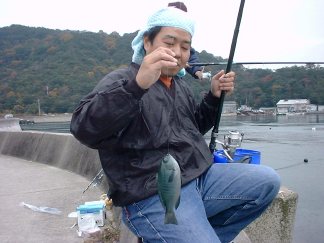 この前後皆に一匹ずつこのサイズのグレの当たりがあった。アジも来てたからやいさんがさびきを試みたが、鈴なりにスズメダイが上がってきて降参。午後からは潮の流れが速くなりすぎて、あたりが分からなくなってしまい、ぱったり釣れなくなってしまった。