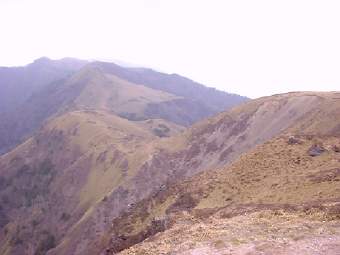 四国の剣山の西の方に三麗(みうね)というところがあり、ハイキングの 好きな連れと5月の連休に訪れた。 10分も歩かないうちに心臓がバクバクいい出し、息もあがりまくりで、 体力の無さを痛感しました。 休み休み、なんとか頂上に着いた頃にはすっかりへろへろになり、 ホントは上の写真の尾根の方へいってみる予定だったけどギブアップ で、(というか休みすぎて時間がなくなった) 連れにはわるかったなァ。 次の機会のために体を鍛えておこう。というかもうちょっと痩せよう。